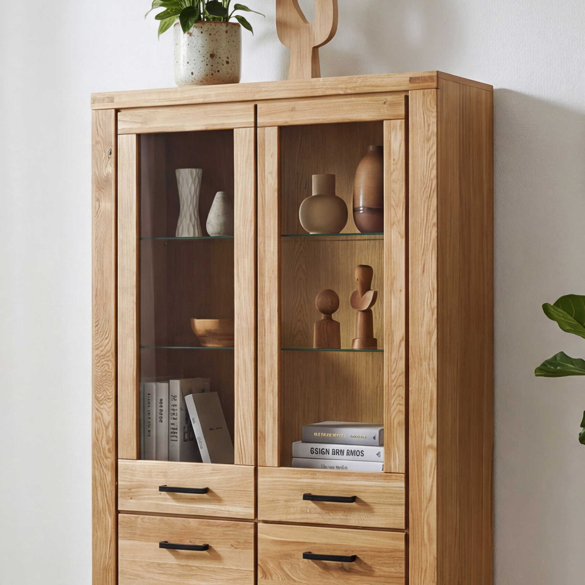 Eiche Wohnwand Martina – Set mit Vitrinen und TV-Kommode aus Massivholz und Furnier
