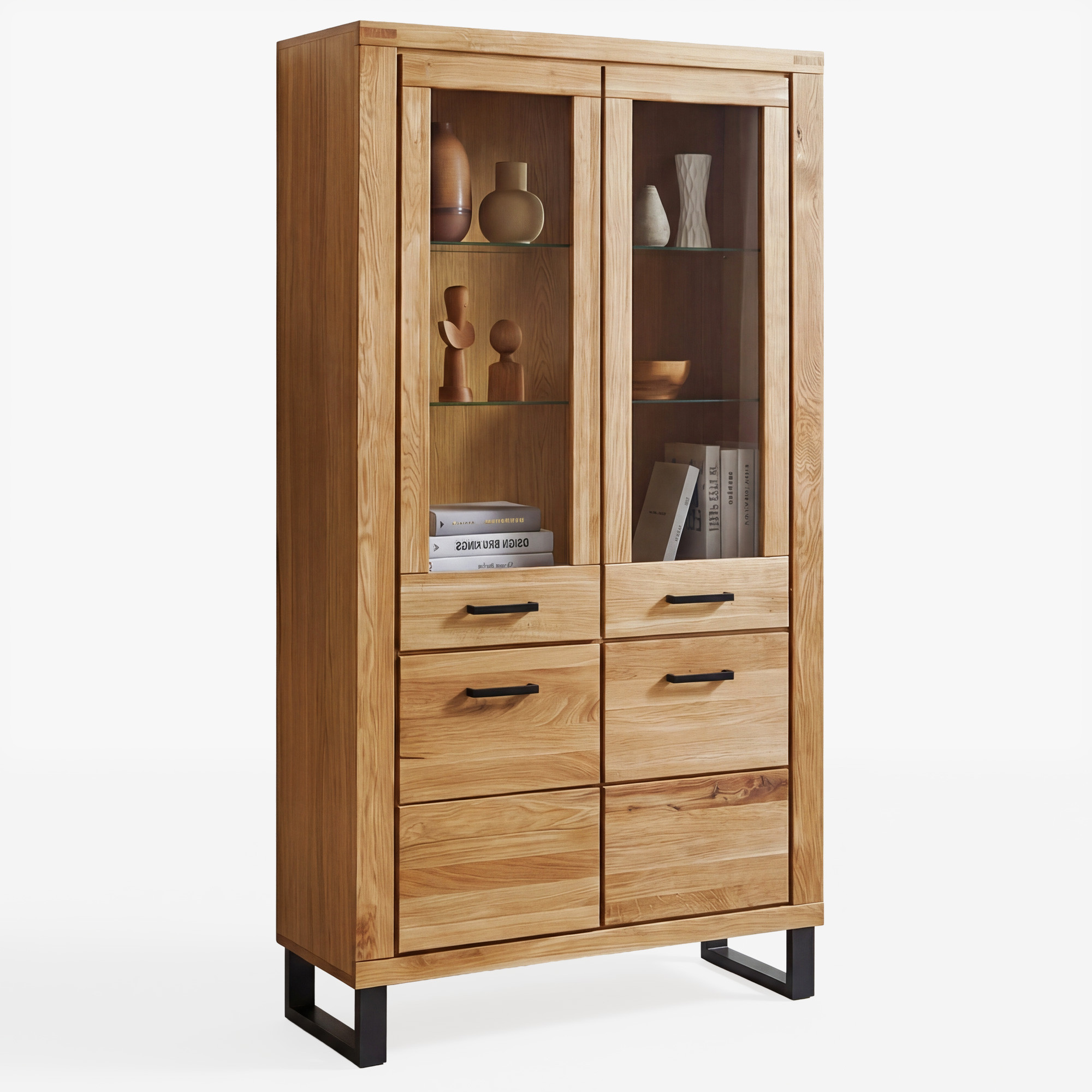 - Zweiflügelige Vitrine Martina 2340 – Maße: Breite 108 cm, Tiefe 40 cm, Höhe 199 cm (verglaste Türen + 3 Schubladen)