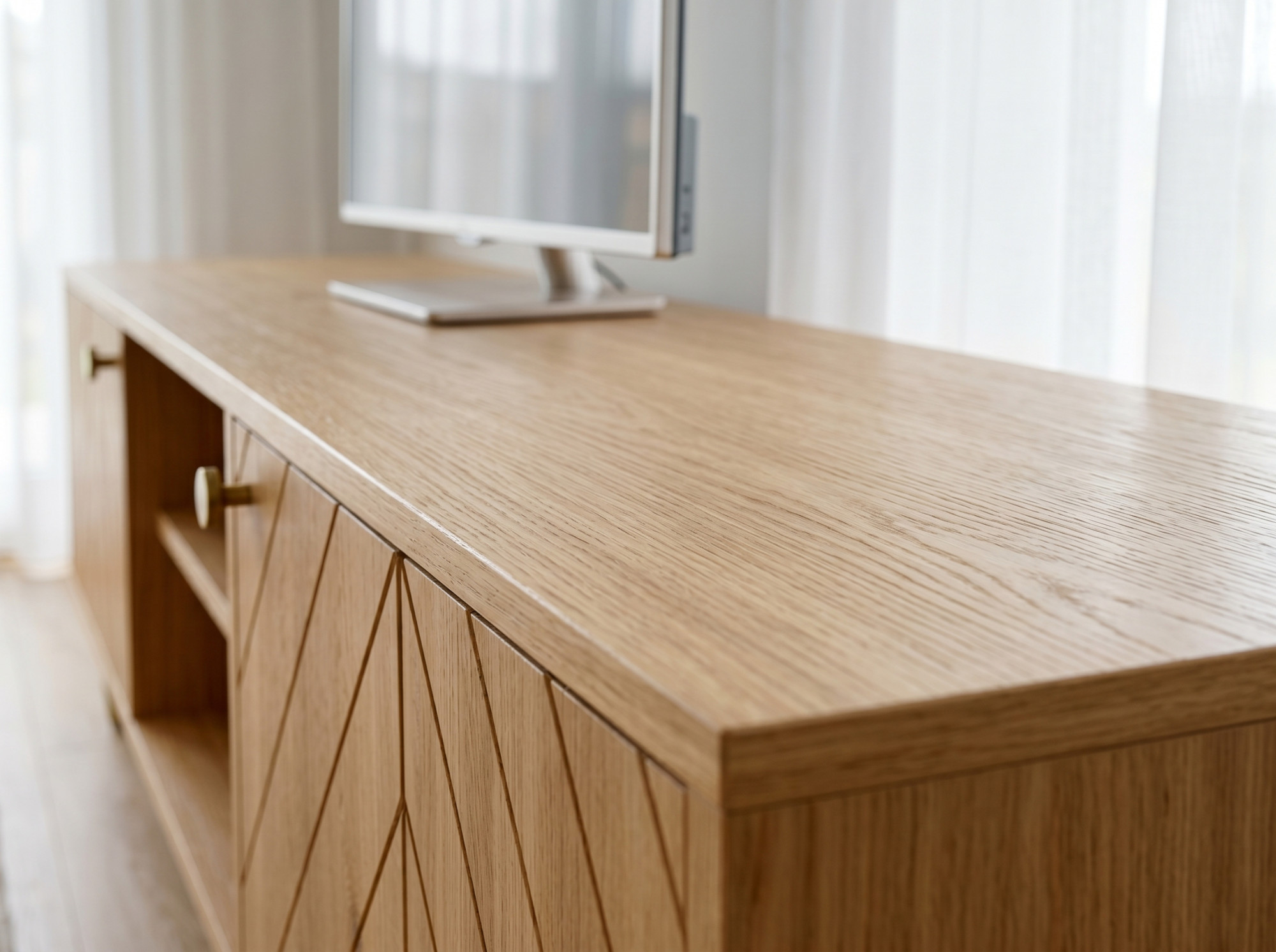 Massive TV-Kommode Jessica 179 cm mit gefrästem Fischgrätmuster – Eichenkommode für das Wohnzimmer